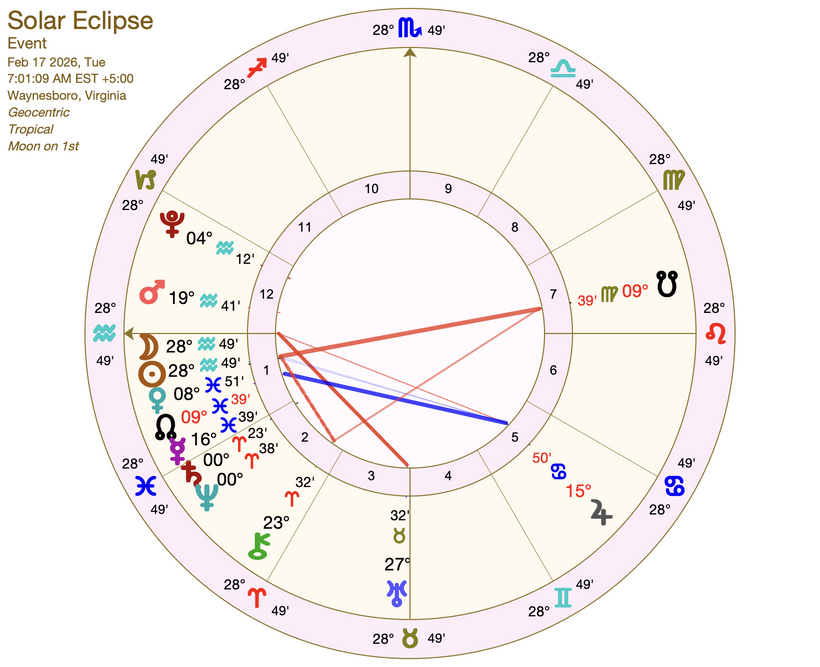 The disruption could take place in the house in your chart that has 28° Aquarius on the cusp. – How does the Eclipse affect your chart?